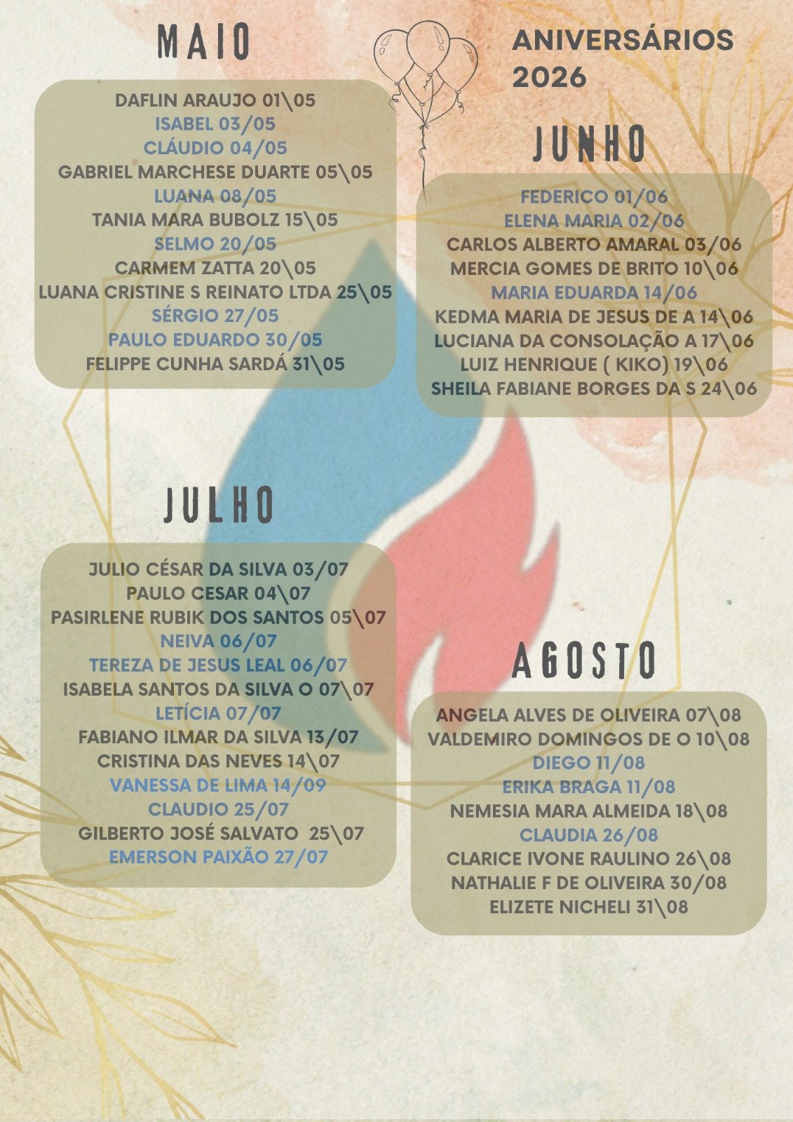 Aniversariantes 2026
