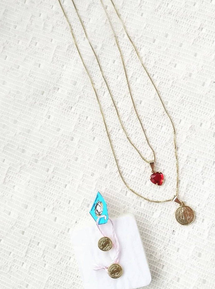 Kit 26: Colar Duplo com Medalha de São Bento + Brinco de São Bento