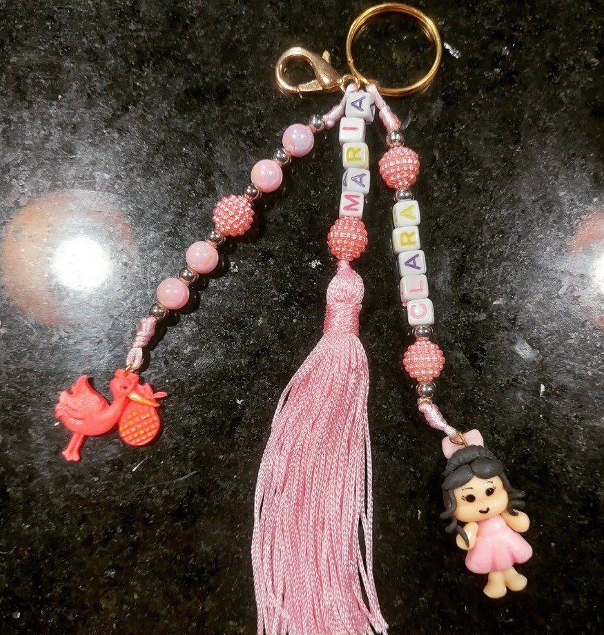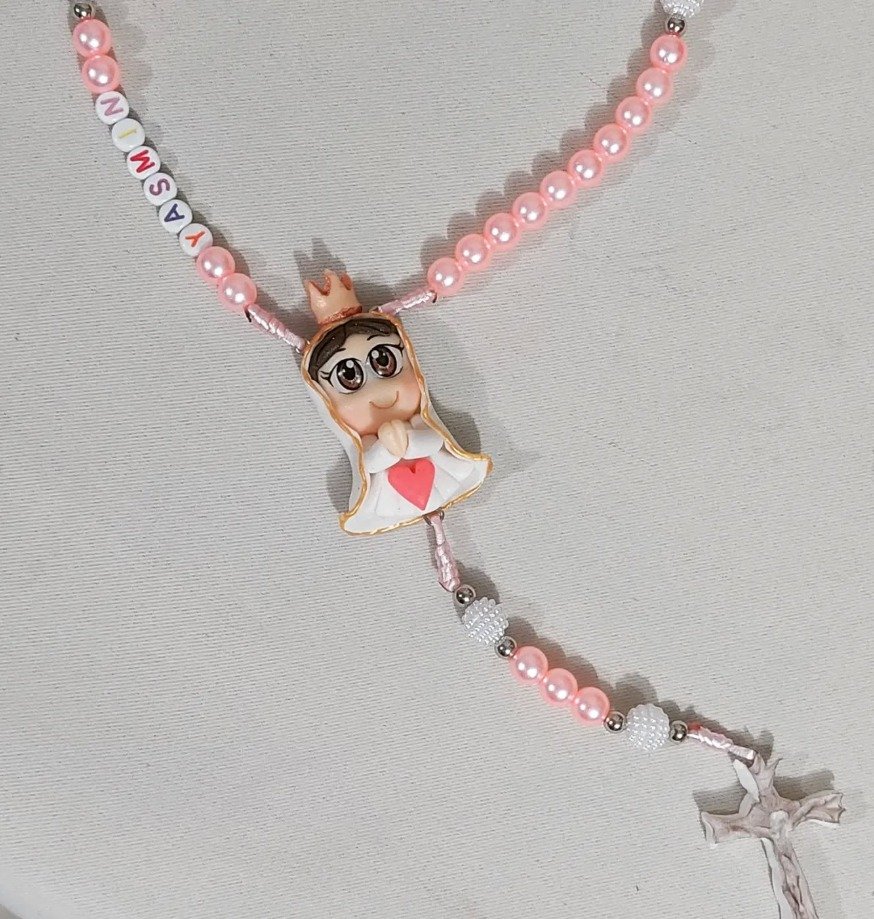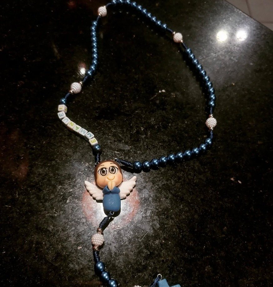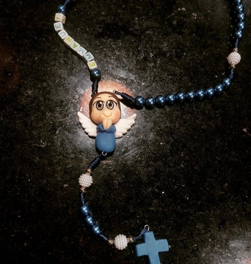 Terço e chaveiro personalizado com nome e entremeio de biscuit