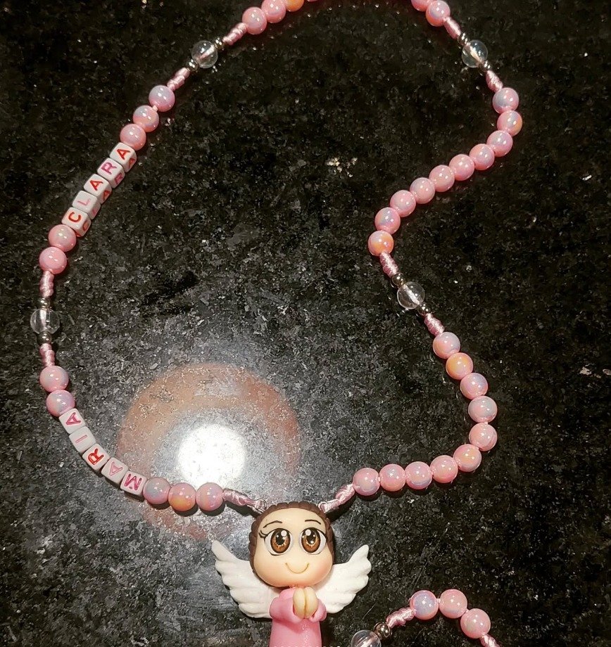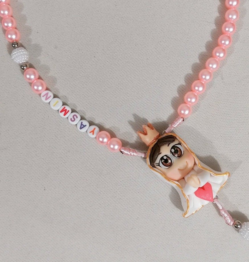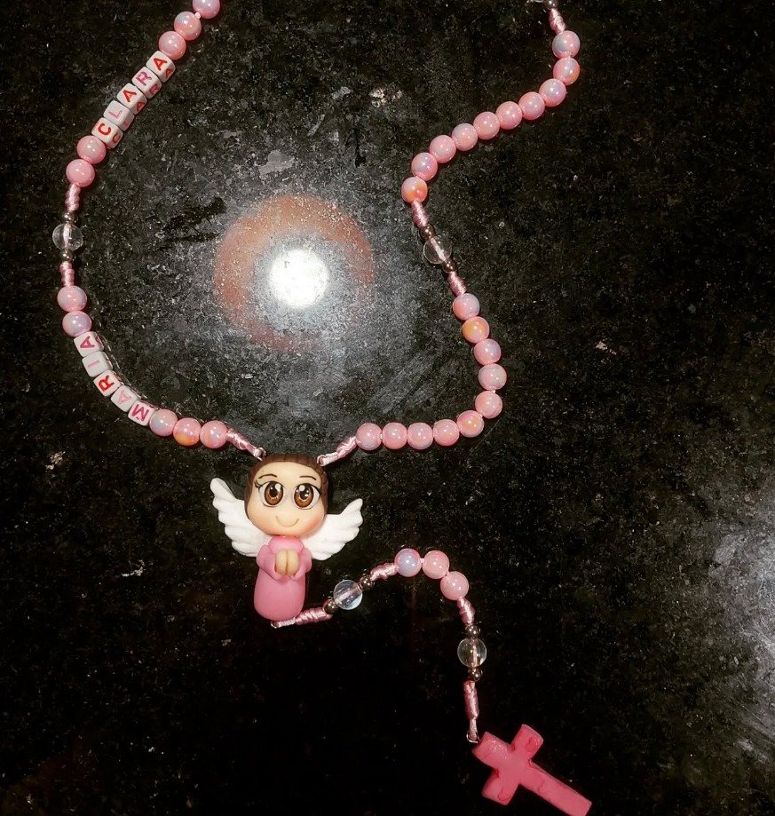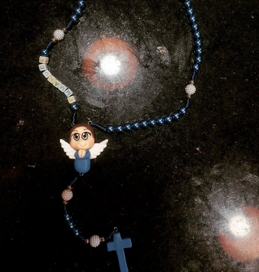 Terço e chaveiro personalizado com nome e entremeio de biscuit
