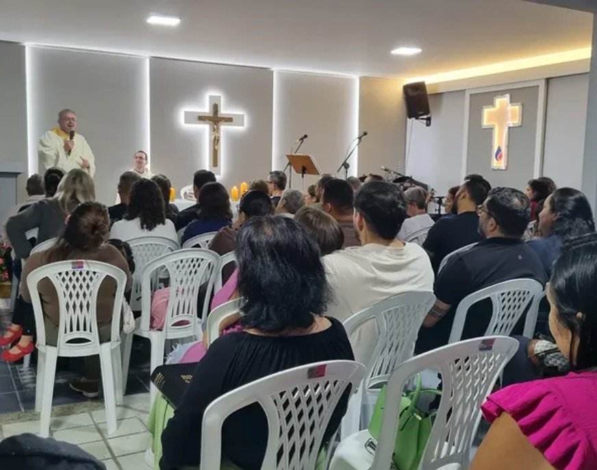 Santa missa com Padre Eduardo Senna, que com sua presença, espiritualidade e palavras ungidas, encheu nossos corações de esperança, fé e amor.